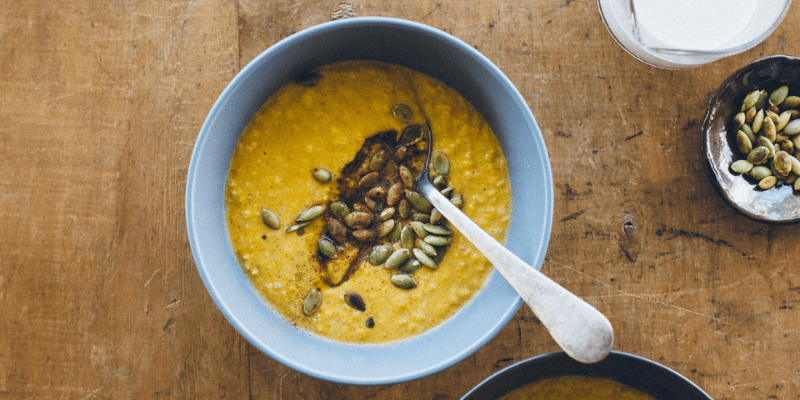 - Bữa trưa: Súp bí đỏ, bánh mì mềm.