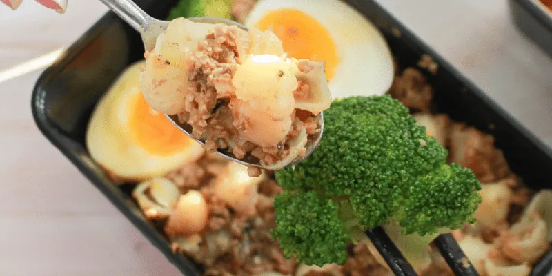 Trưa: Đậu hũ hấp + cơm gạo lứt + canh mồng tơi