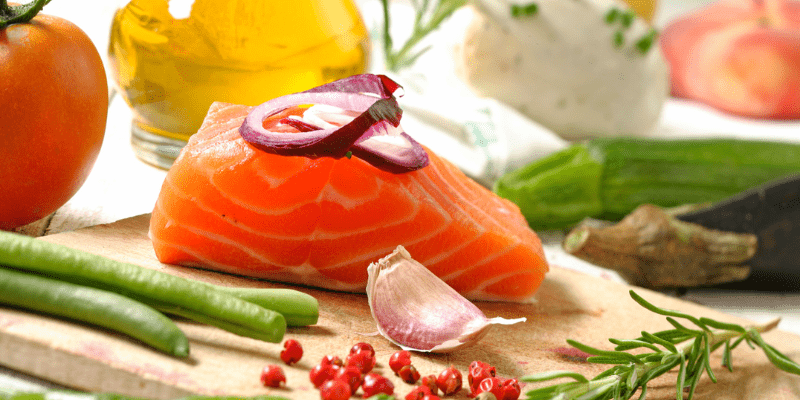 Trưa: Gạo lứt + cá hồi áp chảo + canh mồng tơi