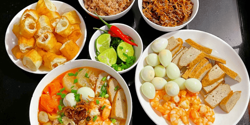 Tối: Miến xào rau củ + đậu hũ non hấp